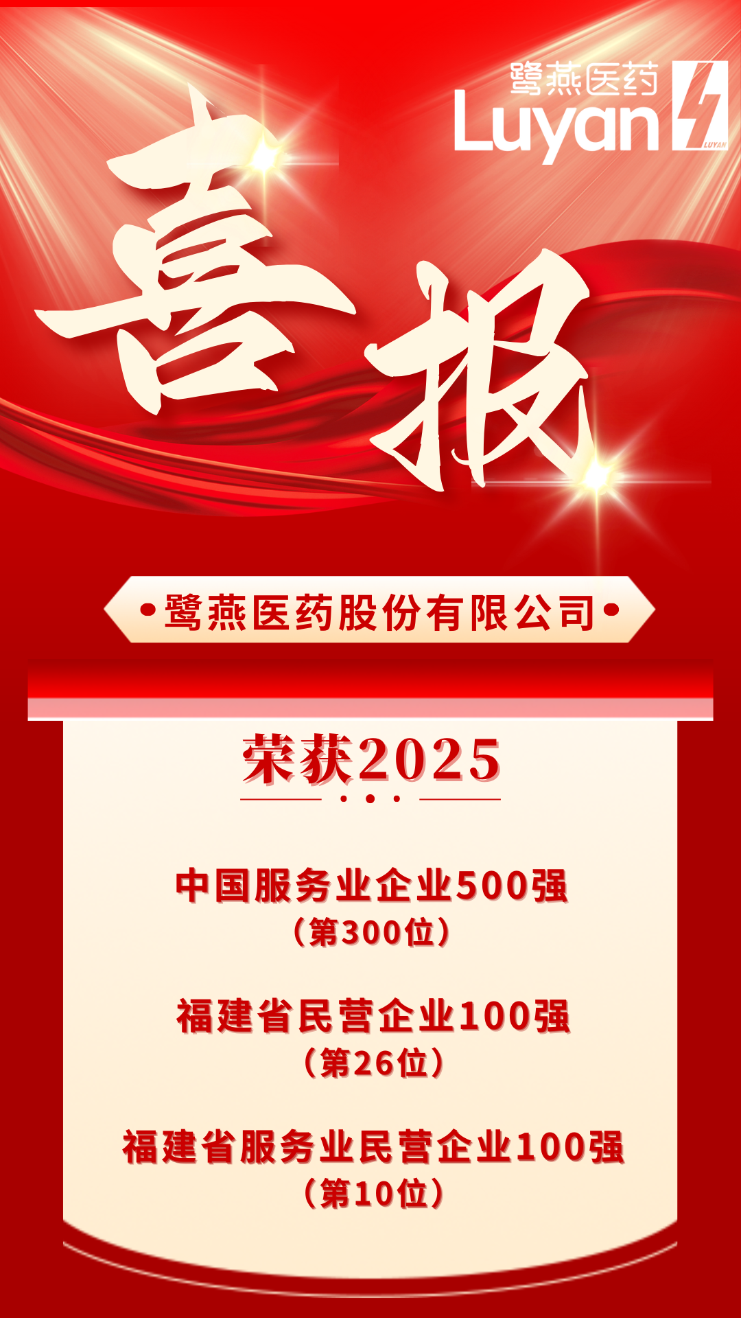 9月18日,中国企业联合会、中国企业家协会在2025现代服务业高质量发展大会上,发布了“2025中国服务业企业500强”,鹭燕医药凭借稳健的发展态势与卓越的服务能力入围,位列第300位,连续12年蝉联该榜单。