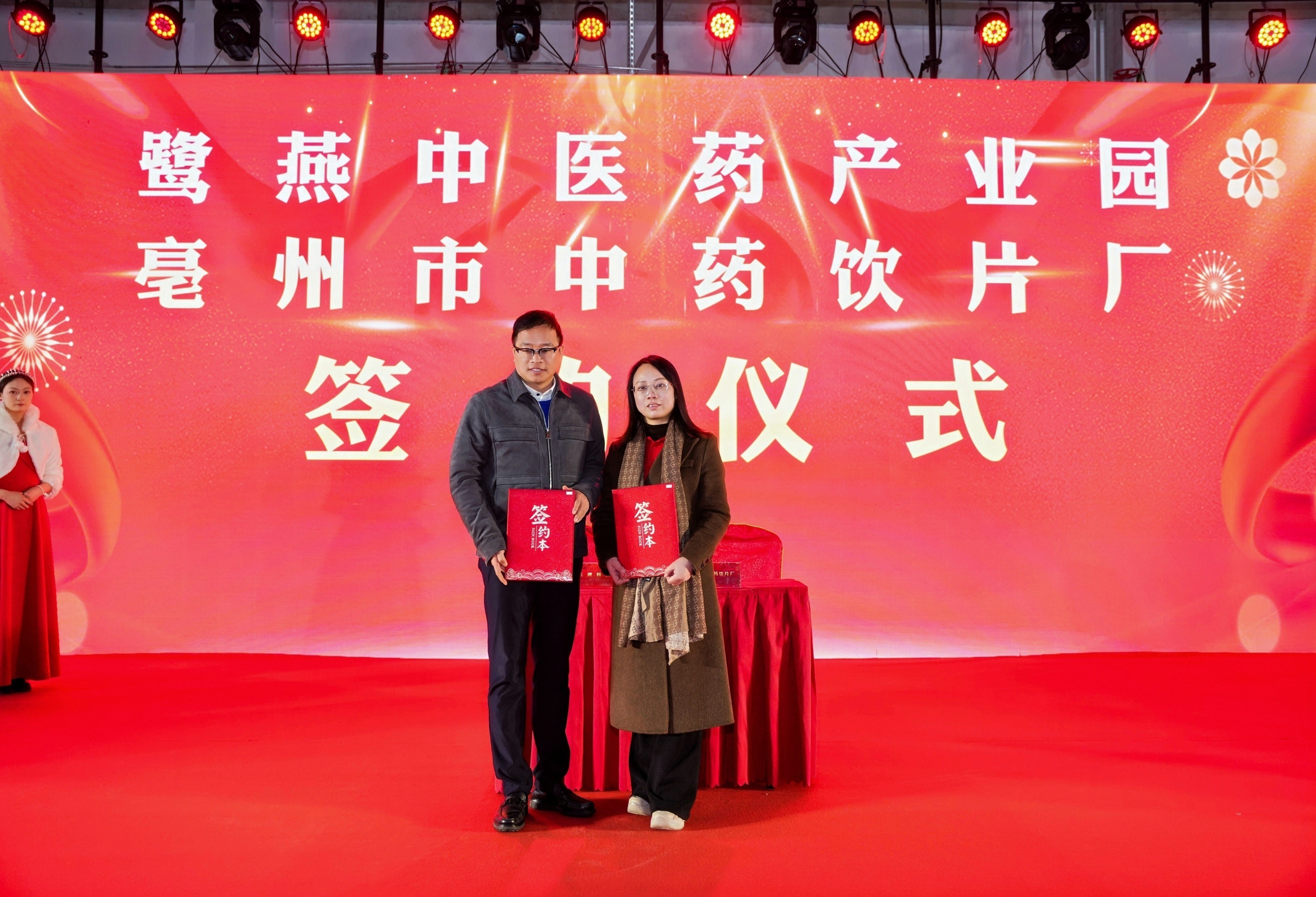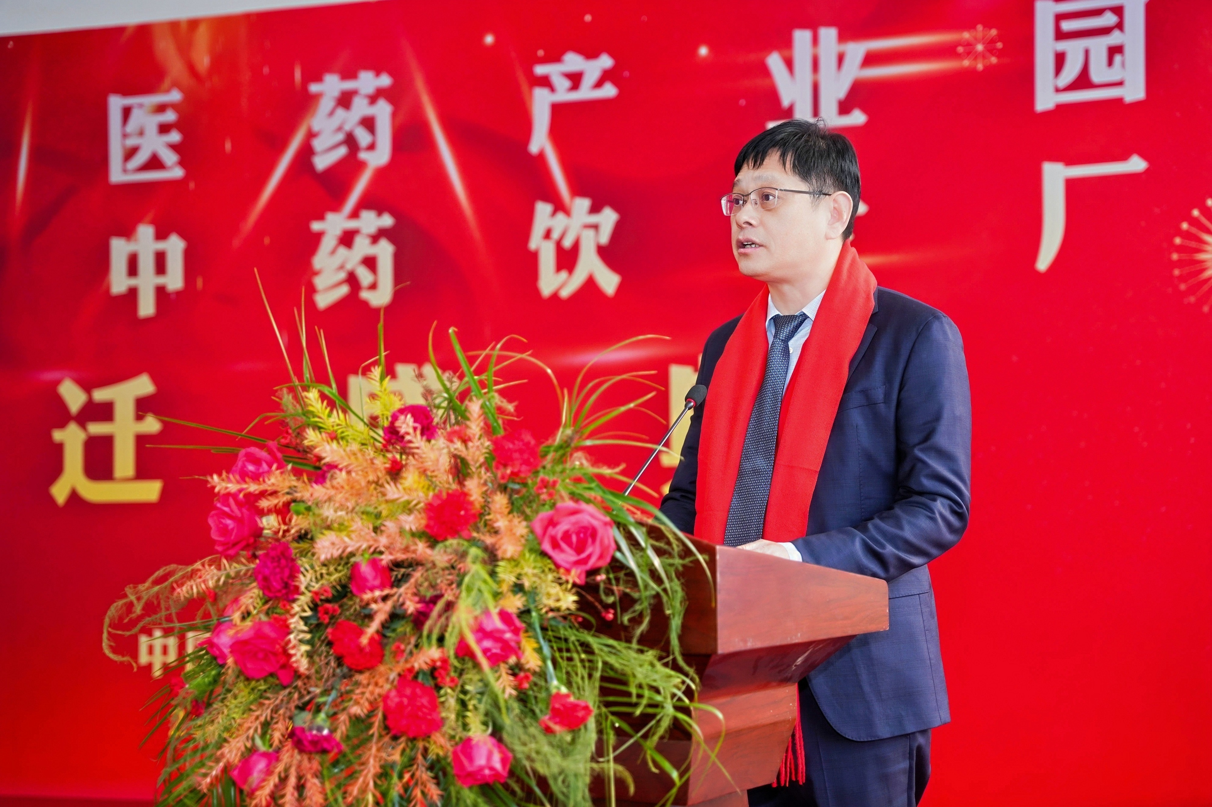庆典会场红绸高悬、花团锦簇,嘉宾席位井然有序。喜庆氛围中,一场见证鹭燕中医药产业新纪元的仪式即将启幕。