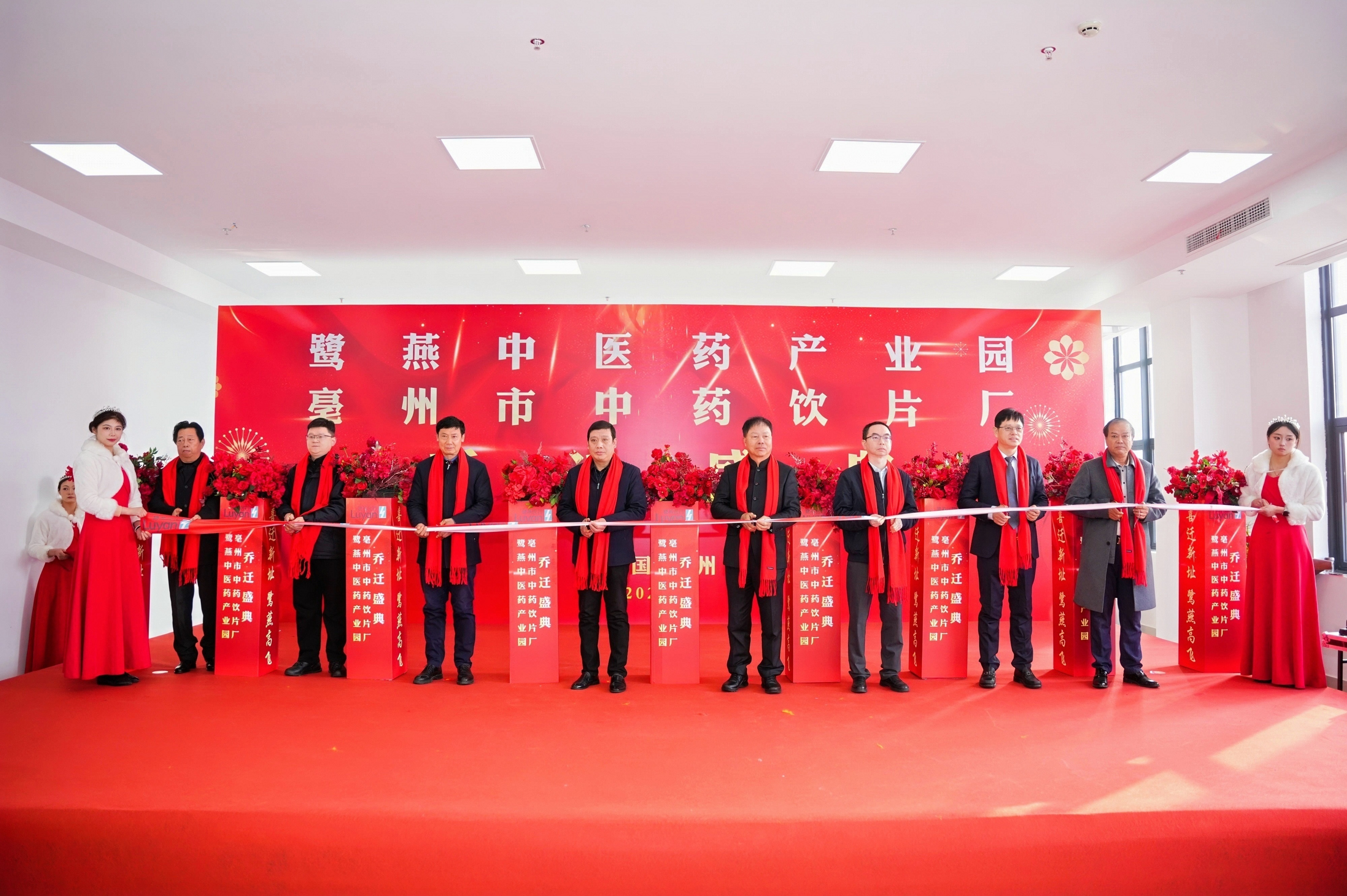亳州市谯城区区长宋保众、鹭燕集团董事长吴金祥、副总裁朱明国等执剪共启,为产业园“开业大吉”!宋保众区长盛赞:“产业园是亳州打造‘世界中医药之都’的新引擎!”